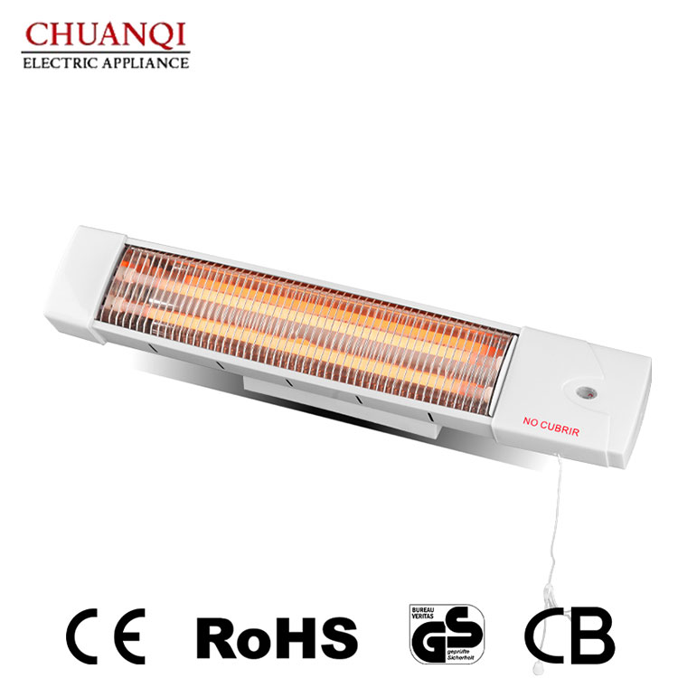· Công nghệ hồng ngoại xa: Sưởi ấm hiệu quả được cung cấp bởi hai ống thạch anh trong Máy sưởi treo tường thạch anh 2 ống 1200W có công tắc dây kéo.